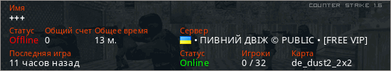 Играет на Counter Strike 1.6 сервере. Страна: УкраинаПервый раз замечен 21:48 22.02.2026