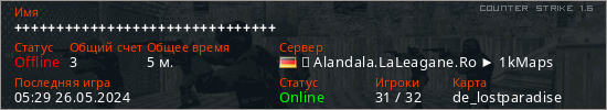 Играет на Counter Strike 1.6 сервере. Страна: ГерманияПервый раз замечен 05:19 26.05.2024