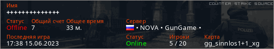 Играет на Counter Strike Source сервере. Страна: РоссияПервый раз замечен 10:54 13.06.2023