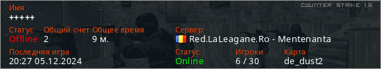 Играет на Counter Strike 1.6 сервере. Страна: РумынияПервый раз замечен 20:13 05.12.2024