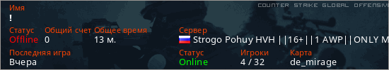 Последний раз был в сети Вчера Игрок с таким ником замечен на 49 серверах