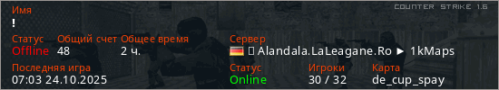 Последний раз был в сети 07:03 24.10.2025 Игрок с таким ником замечен на 49 серверах