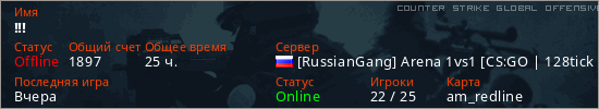 Играет на Counter Strike Global Offensive сервере. Страна: РоссияПервый раз замечен 15:15 14.06.2025