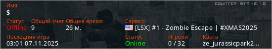 Играет на Counter Strike 1.6 сервере. Страна: СШАПервый раз замечен 02:15 07.11.2025