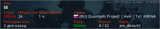 Играет на Counter Strike Global Offensive сервере. Страна: РоссияПервый раз замечен 13:54 16.04.2026