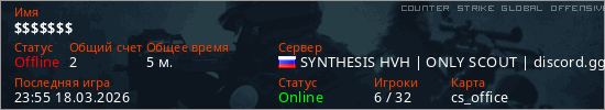Играет на Counter Strike Global Offensive сервере. Страна: РоссияПервый раз замечен 23:53 18.03.2026