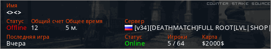 Играет на Counter Strike Source сервере. Страна: РоссияПервый раз замечен 23:03 19.03.2026