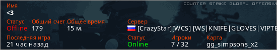 Играет на Counter Strike Global Offensive сервере. Страна: РоссияПервый раз замечен 01:23 18.03.2026
