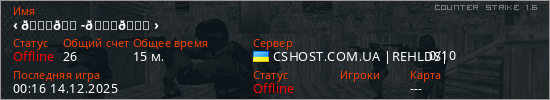 Играет на Counter Strike 1.6 сервере. Страна: УкраинаПервый раз замечен 18:16 06.12.2025