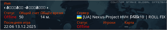 Играет на Counter Strike Global Offensive сервере. Страна: УкраинаПервый раз замечен 20:31 08.12.2025