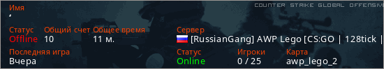 Играет на Counter Strike Global Offensive сервере. Страна: РоссияПервый раз замечен 13:33 17.04.2026
