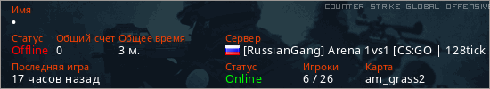 Играет на Counter Strike Global Offensive сервере. Страна: РоссияПервый раз замечен 13:06 20.03.2026