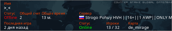 Играет на Counter Strike Global Offensive сервере. Страна: РоссияПервый раз замечен 21:43 10.12.2025