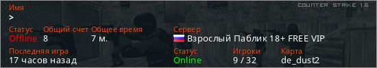Последний раз был в сети 16 часов назад Игрок с таким ником замечен на 33 серверах
