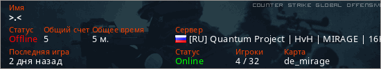 Играет на Counter Strike Global Offensive сервере. Страна: РоссияПервый раз замечен 23:32 19.04.2026