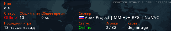 Последний раз был в сети 12 часов назад Игрок с таким ником замечен на 39 серверах