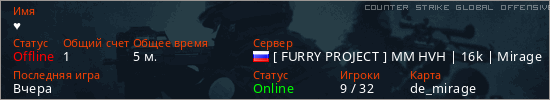 Последний раз был в сети Вчера Игрок с таким ником замечен на 23 серверах