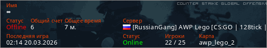 Играет на Counter Strike Global Offensive сервере. Страна: РоссияПервый раз замечен 01:47 20.03.2026