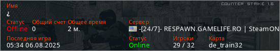 Играет на Counter Strike 1.6 сервере. Страна: СШАПервый раз замечен 05:34 06.08.2025