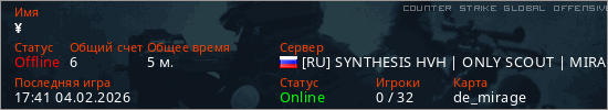 Играет на Counter Strike Global Offensive сервере. Страна: РоссияПервый раз замечен 20:02 01.02.2026