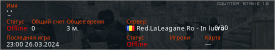 Играет на Counter Strike 1.6 сервере. Страна: РумынияПервый раз замечен 23:00 26.03.2024