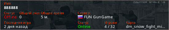 Последний раз был в сети Вчера Игрок с таким ником замечен на 14 серверах