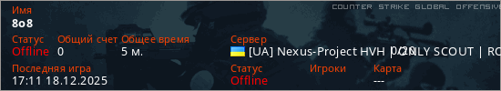 Играет на Counter Strike Global Offensive сервере. Страна: УкраинаПервый раз замечен 17:07 18.12.2025