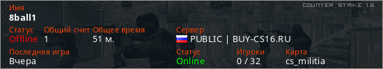 Играет на Counter Strike 1.6 сервере. Страна: РоссияПервый раз замечен 18:07 19.02.2026