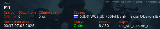Играет на Counter Strike Global Offensive сервере. Страна: РоссияПервый раз замечен 00:25 07.03.2026