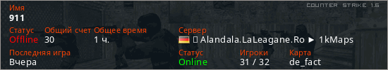 Играет на Counter Strike 1.6 сервере. Страна: ГерманияПервый раз замечен 07:30 14.04.2024