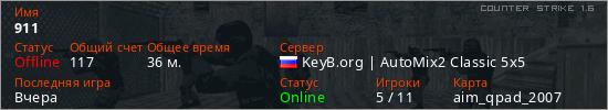 Последний раз был в сети Вчера Игрок с таким ником замечен на 53 серверах