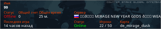 Играет на Counter Strike Global Offensive сервере. Страна: РоссияПервый раз замечен 12:24 14.06.2025