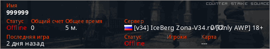 Играет на Counter Strike Source сервере. Страна: РоссияПервый раз замечен 16:56 16.03.2026
