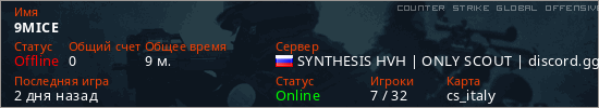 Играет на Counter Strike Global Offensive сервере. Страна: РоссияПервый раз замечен 17:07 11.04.2026