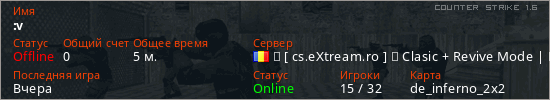 Играет на Counter Strike 1.6 сервере. Страна: РумынияПервый раз замечен 18:28 02.02.2026