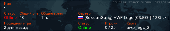 Последний раз был в сети 2 дня назад Игрок с таким ником замечен на 44 серверах