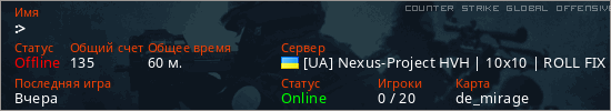 Играет на Counter Strike Global Offensive сервере. Страна: УкраинаПервый раз замечен 16:26 15.03.2026