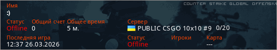 Играет на Counter Strike Global Offensive сервере. Страна: УкраинаПервый раз замечен 12:33 26.03.2026