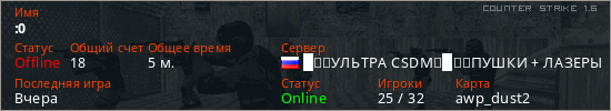 Последний раз был в сети Вчера Игрок с таким ником замечен на 25 серверах