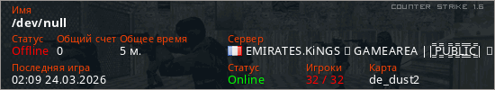 Играет на Counter Strike 1.6 сервере. Страна: ФранцияПервый раз замечен 01:32 24.03.2026
