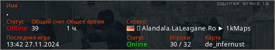 Последний раз был в сети 13:42 27.11.2024 Игрок с таким ником замечен на 48 серверах
