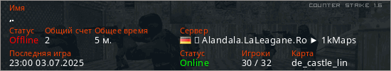 Играет на Counter Strike 1.6 сервере. Страна: ГерманияПервый раз замечен 22:54 03.07.2025