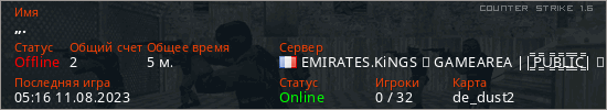 Играет на Counter Strike 1.6 сервере. Страна: ФранцияПервый раз замечен 05:08 11.08.2023