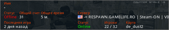 Играет на Counter Strike 1.6 сервере. Страна: СШАПервый раз замечен 15:09 02.02.2026