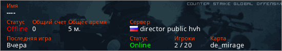 Последний раз был в сети Вчера Игрок с таким ником замечен на 50 серверах