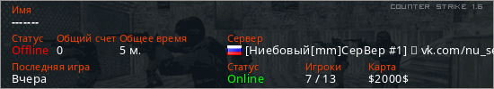 Последний раз был в сети Вчера Игрок с таким ником замечен на 16 серверах