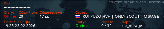 Играет на Counter Strike Global Offensive сервере. Страна: РоссияПервый раз замечен 13:58 23.02.2026