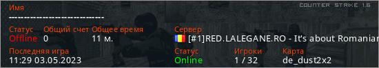 Играет на Counter Strike 1.6 сервере. Страна: РумынияПервый раз замечен 11:13 22.03.2023
