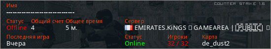 Последний раз был в сети Вчера Игрок с таким ником замечен на 31 сервере