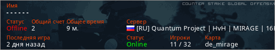 Играет на Counter Strike Global Offensive сервере. Страна: РоссияПервый раз замечен 09:05 15.03.2026
